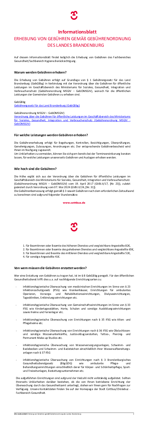 Rechtsgrundlagen: Brandenburgisches Gesundheitsdienstgesetz § 10 vom 03.06.1994