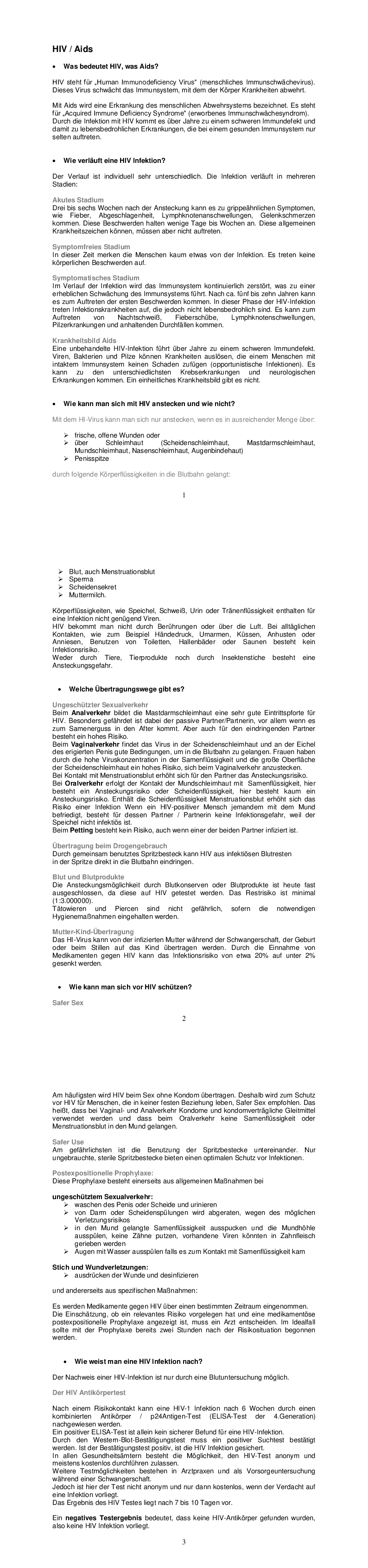 - Persönliche oder telefonische Beratung für alle, die sich über AIDS und sexuell übertragbare Krankheiten umfassend informieren wollen