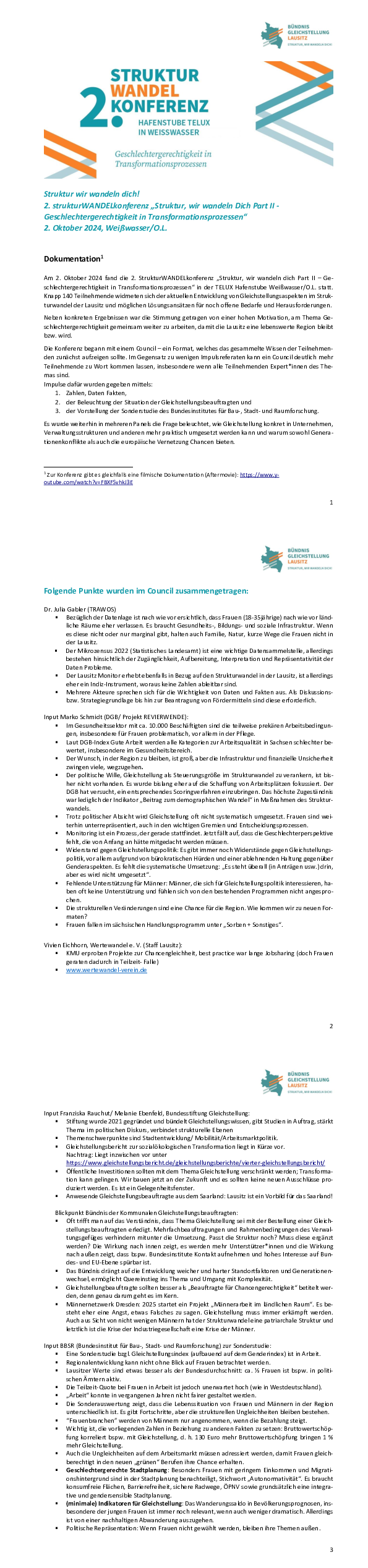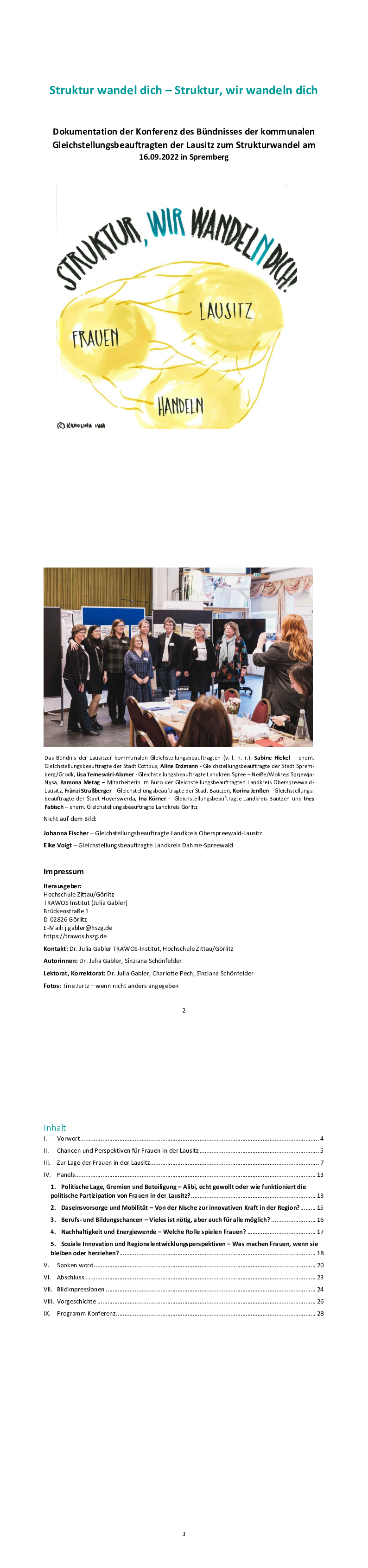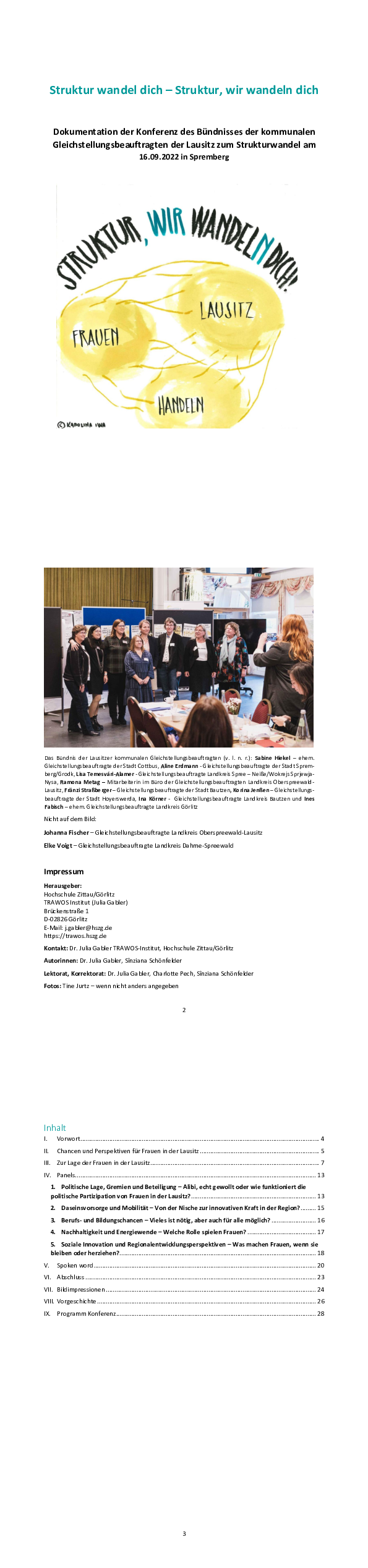 Dokumentation der Konferenz des Bündnisses der kommunalen Gleichstellungsbeauftragten der Lausitz zum Strukturwandel am 16.09.2022 in Spremberg