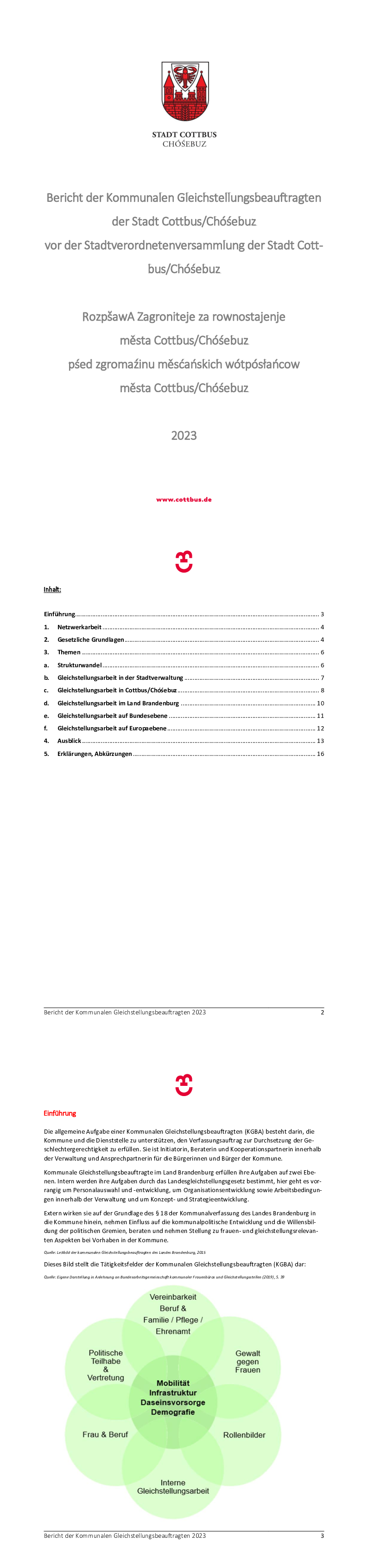 Die Gleichstellungsbeauftragte berichtet einmal im Jahr vor der Stadtverordnetenversammlung über ihre Arbeit. Dabei gibt sie einen Überblick über die wichtigsten Projekte und Maßnahmen, die sie im vergangenen Jahr umgesetzt hat, um die Gleichstellung in der Stadt zu fördern.