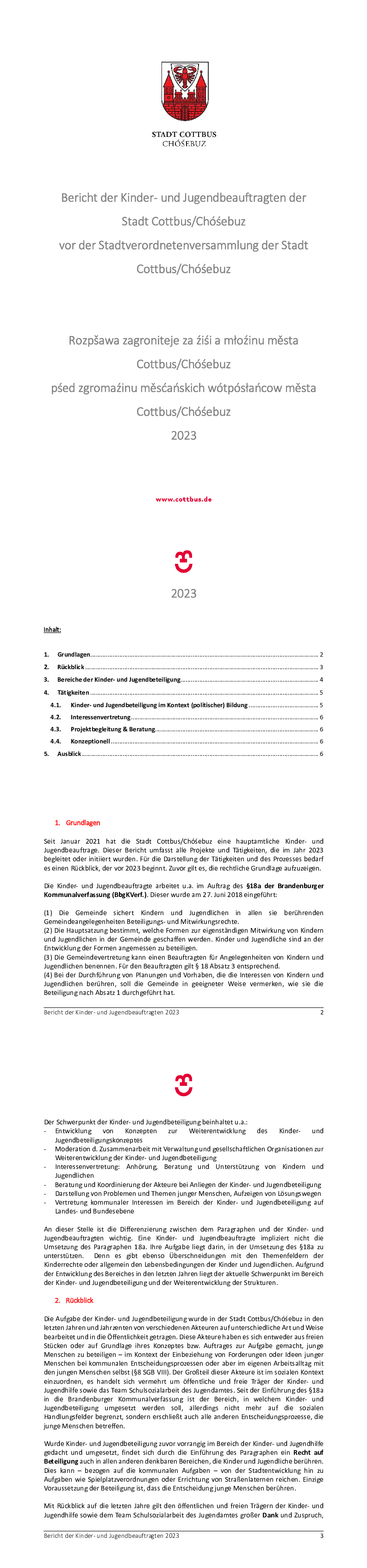 Gemeinsam mit Kindern, Jugendlichen und vielen Erwachsenen setzt sich die Kinder- und Jugendbeauftragte für das Ziel ein, dass Cottbus eine kinderfreundliche Stadt ist, eine Stadt, in der Kinder und Jugendliche Rechte habt, sich einmischen und Mitverantwortung übernehmen können.
