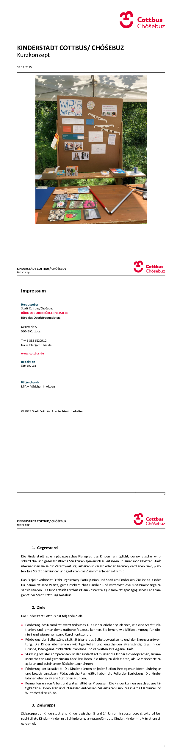 2022 hat erstmalig die Kinderstadt „Abenteuercity“ in Cottbus stattgefunden. Ca. 60 Kinder haben ihre eigene Stadt bespielt, gestaltet und verwaltet. Die Kinderstadt lebt von den Ideen und Vorstellungen der Kinder.