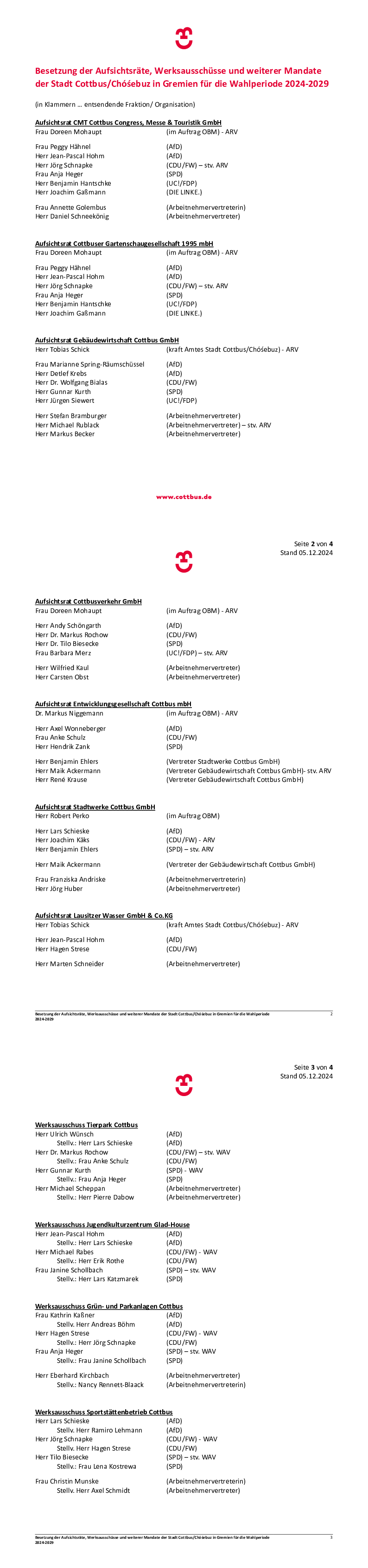 Kontrolle und Überwachung der Erfüllung gesetzlicher Bestimmungen der Brandenburgischen Kommunalverfassung zum Gemeindewirtschaftsrecht, der einschlägigen gesellschaftsrechtlichen Regelungen, des EU-Beihilferechts und der Beschlüsse der Stadtverordnetenversammlung bzw. der Unternehmensgremien