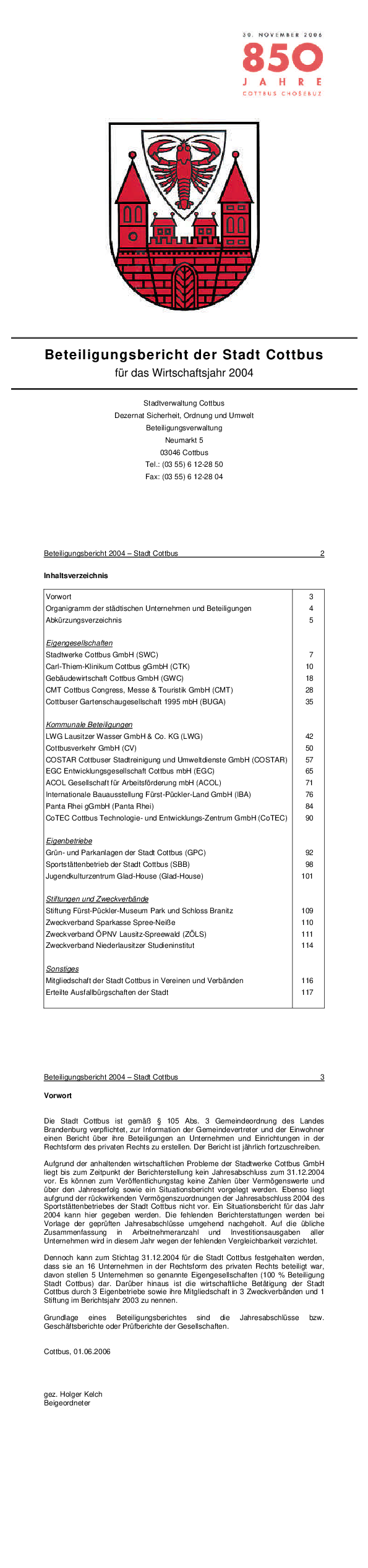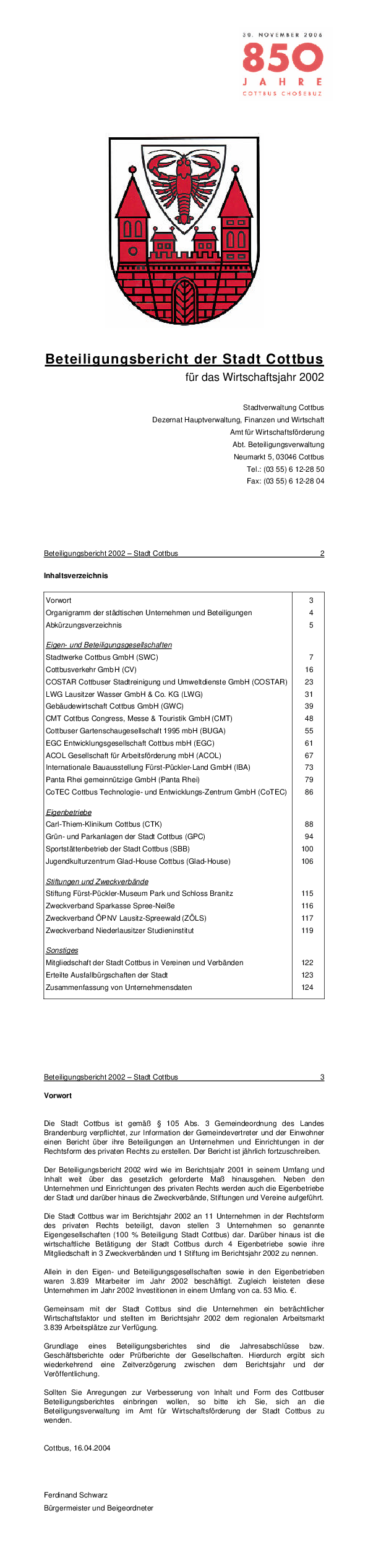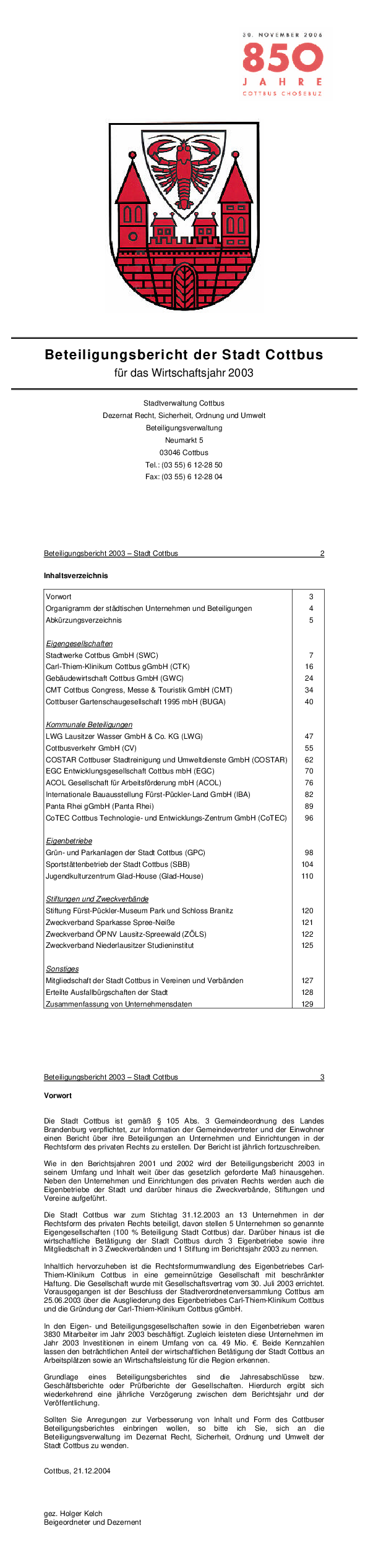Folgende Beteiligungsberichte sind abrufbar. Die Möglichkeit der Einsichtnahme ist zudem im Neumarkt 5, Zimmer 224 gegeben.