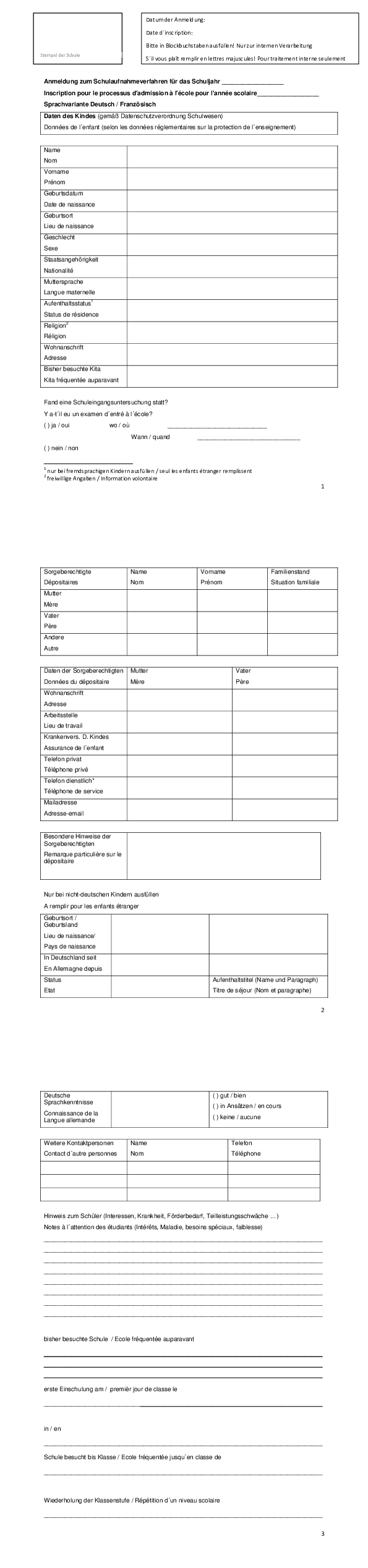 - Schulanmeldung Dokumente