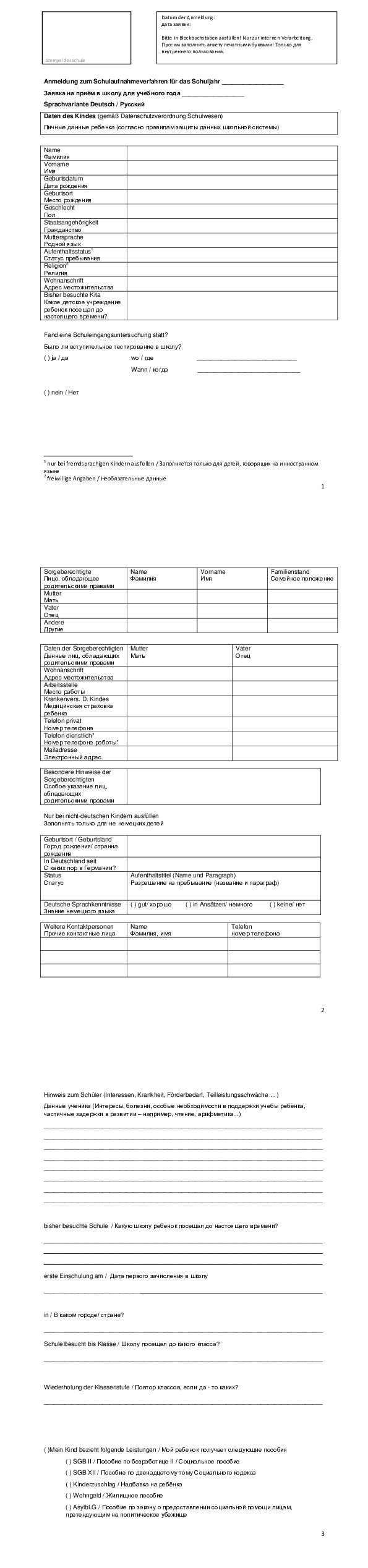 Schulanmeldung