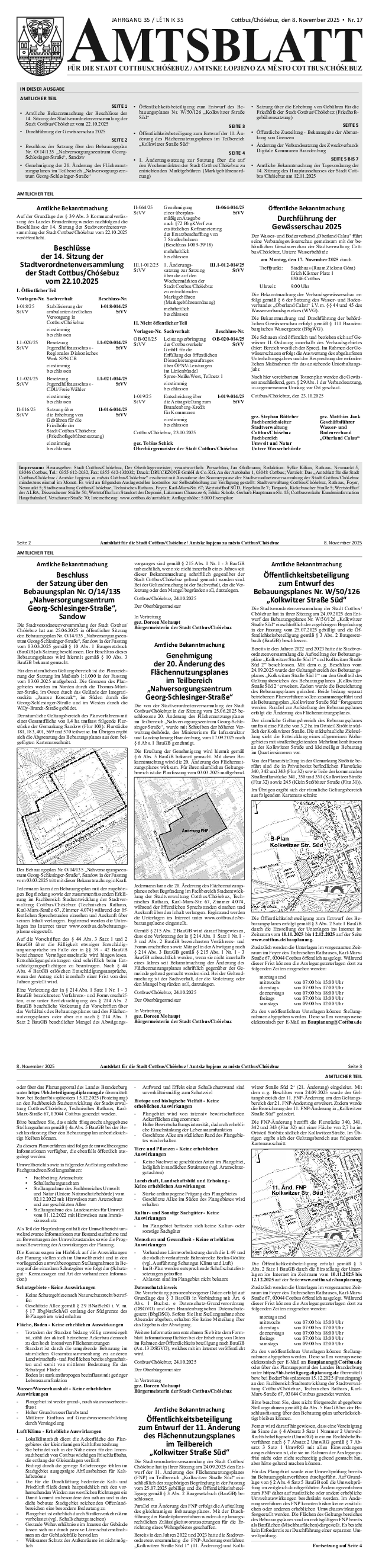 Amtsblatt-Nr. 17-2025 vom 08.11.2025 - Stadt Cottbus/Chóśebuz